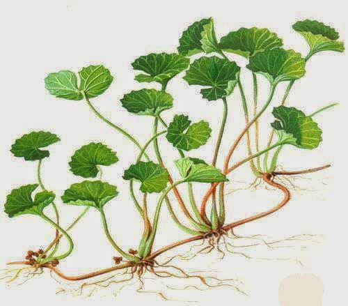 Le molecole più significative contenute nella C. asiatica sono rappresentate dalla frazione terpenica (in particolare dall’asiaticoside, madecassoside, acido madecassico e acido asiatico) che agiscono promuovendo la sintesi di collagene. In particolare al madecassoside si deve la capacità di aumentare la produzione del collagene di tipo III, mentre gli altri triterpeni stimolano i fibroblasti nella produzione di collagene di tipo I, ovvero quel tipo di collagene la cui percentuale decresce fisiologicamente con l’avanzare dell’età. Il meccanismo d’azione a monte di queste attività prevede la stimolazione della proliferazione dei fibroblasti con un conseguente aumento della sintesi di collagene e del contenuto intracellulare di fibronectina che portano ad un miglioramento della resistenza alla trazione della pelle (essa risulta più elastica).